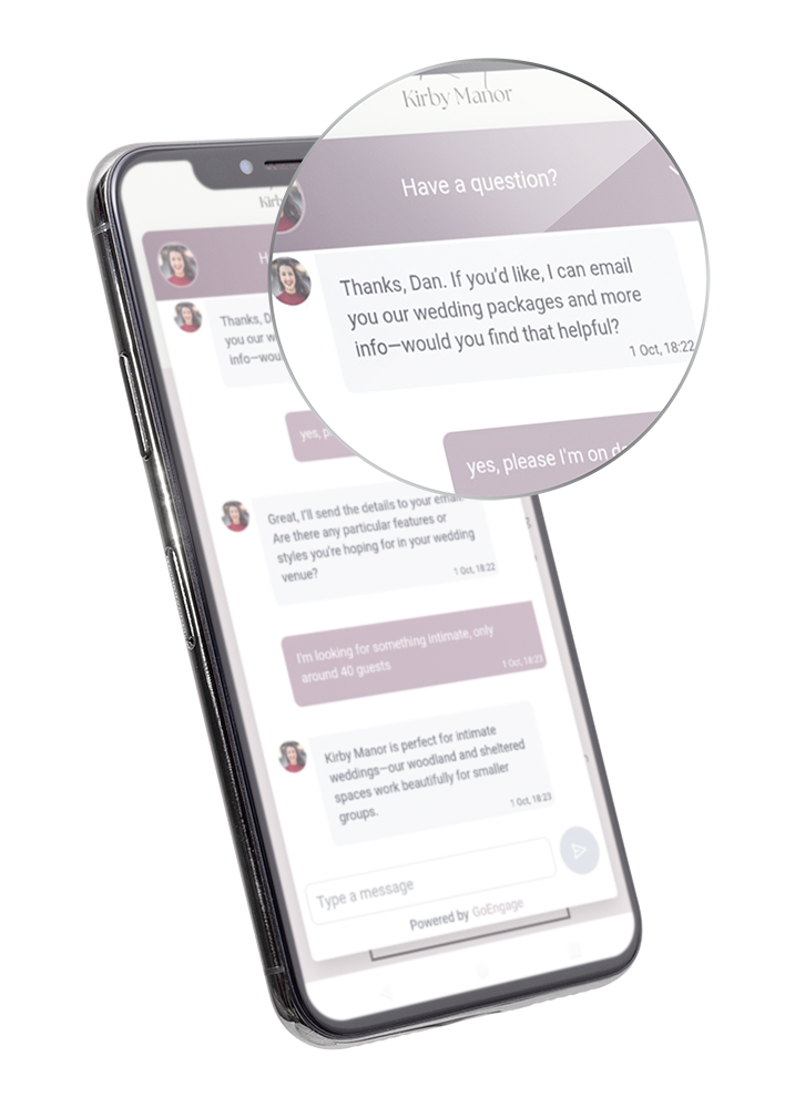 The chatbot is designed to manage common questions about services, pricing, and appointment bookings. You will be amazed at how proficient the AI can converse with prospects and customers. But if there are areas you do not wish the bot to handle - such as pricing, we will prompt the chatbot to escalate to a human or request the user to contact the events team directly.
